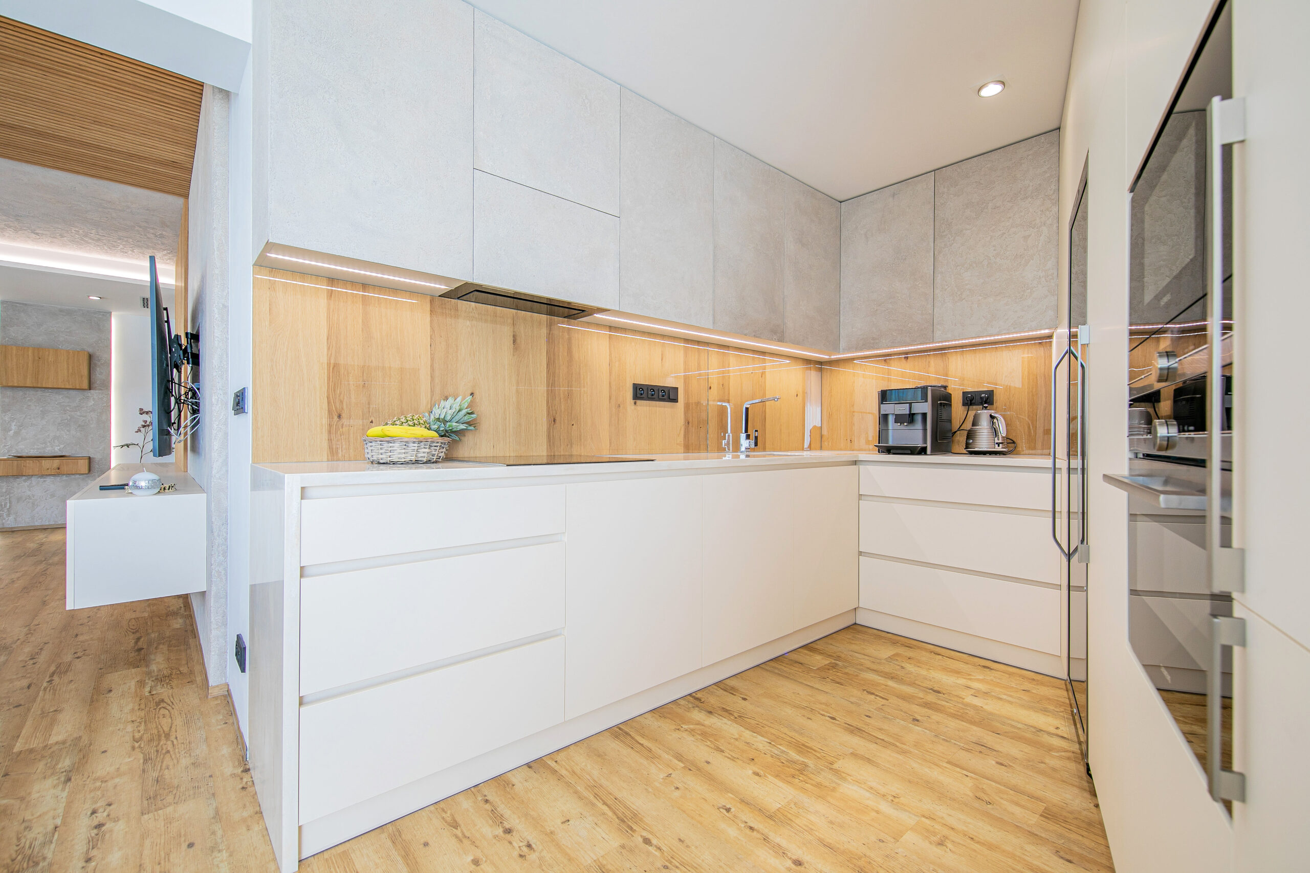 Kompletní projekt interiéru v přírodním světlých barvách. Realizace firmou Brossini Design.
